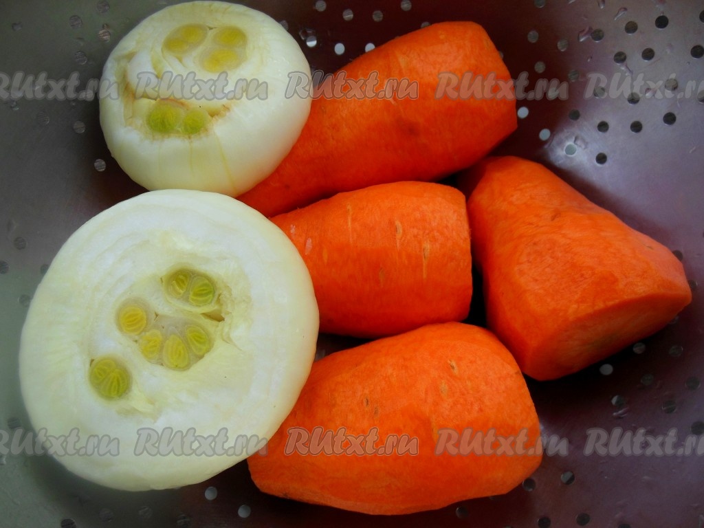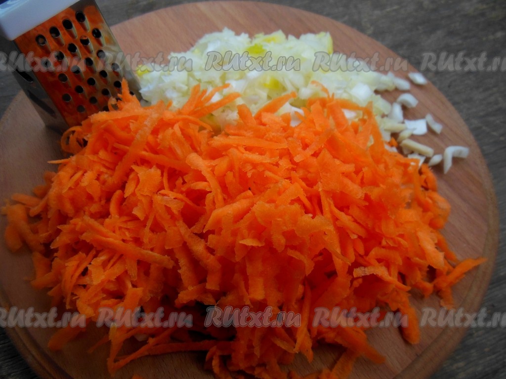 Лук нарежьте небольшими кубиками, морковь натрите на терке.