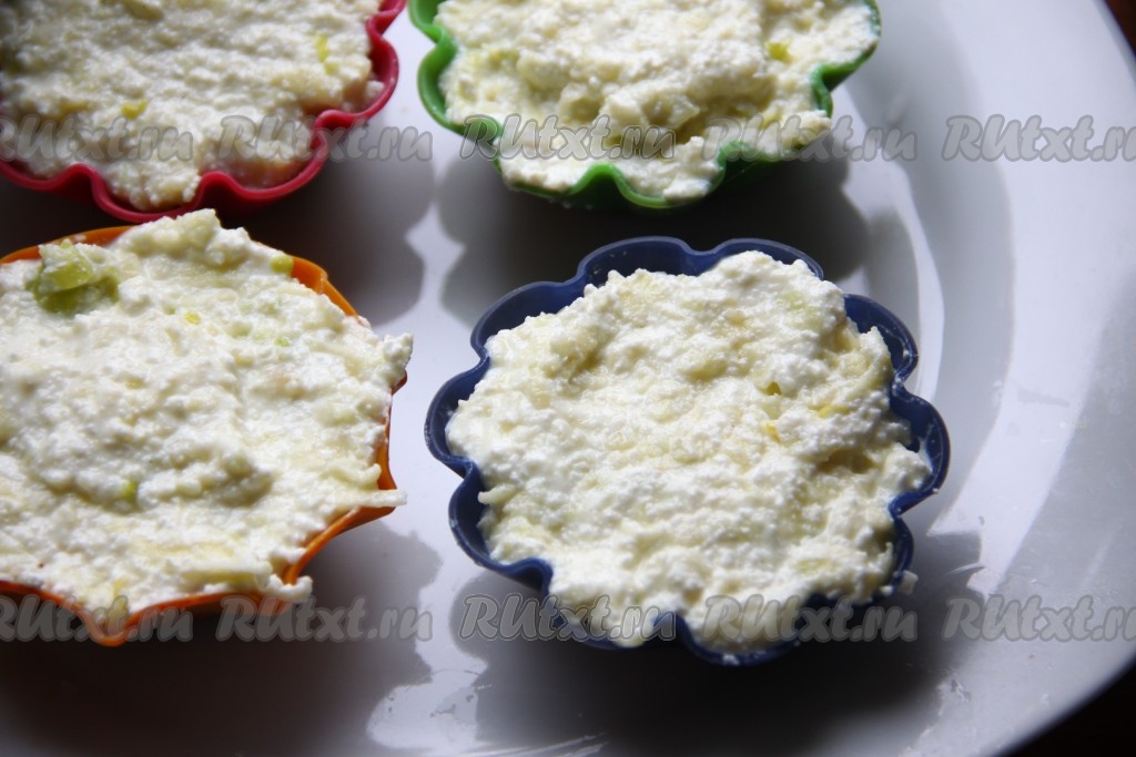 Полученная масса может быть слегка жидковатой, не пугайтесь этого. Густота и консистенция этих диетических сырников зависит от сочности творога, яблок и размера яйца. Творожную массу разлить по формочкам, заполняя их до самого верха (сырники в процессе выпекания в микроволновке не увеличиваются в объеме, поэтому формочки можно смело заполнять полностью). Из данного количества ингредиентов у меня вышло 4 сырника.