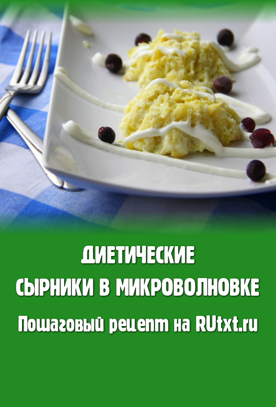 Отправить в микроволновку и запекать около 5-6 минут при максимальной мощности (мощность моей микроволновки 900 Ватт). Диетические сырники получаются очень вкусными. Попробуйте!