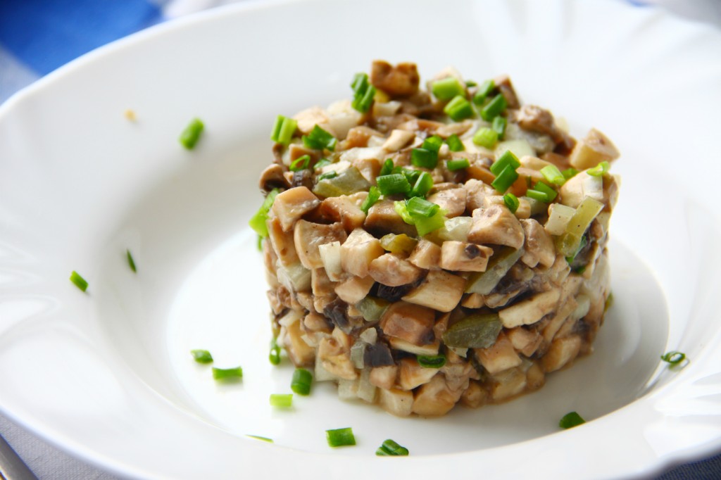 Предлагаю рецепт салата с сырыми шампиньонами - это очень вкусная закуска, известная как тар-тар из шампиньонов. Такой салатик понравится всем, даже тем, кто с осторожностью относится к сырым шампиньонам. Вкусный маринад, огурчики и хрустящий лук делают это блюдо неимоверно вкусным.