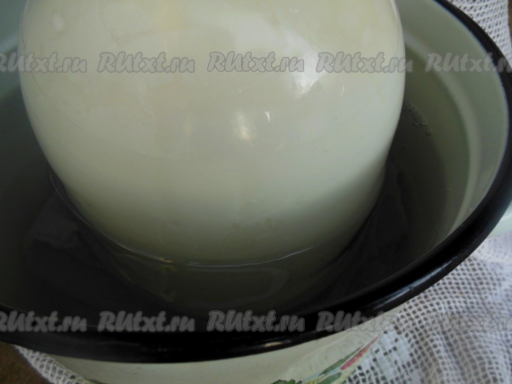Дно высокой кастрюли застелите марлей или тряпочкой, сложенной в несколько раз, чтобы при нагревании банка не лопнула. Налейте в кастрюлю холодную воду и поставьте в неё банку со скисшимся молоком (вода в кастрюле должна доходить практически до "плечиков" банки).