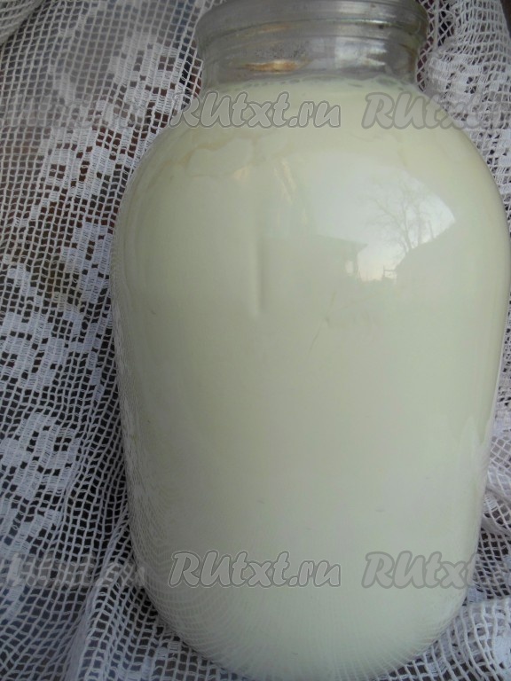 Молоко поставьте в теплое место, желательно возле печки или духовки. Оставьте до полного скисания, крышкой не накрывайте, можно прикрыть марлей. На стенках банки образуются "ходы" (как на фото), перемешивать не нужно.