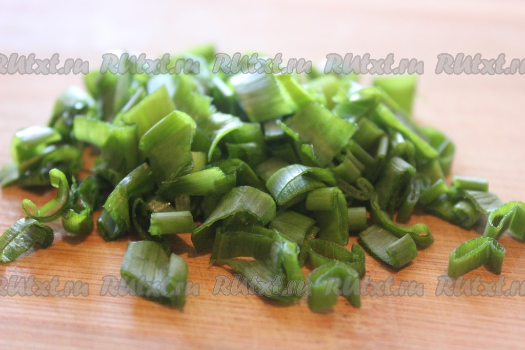 Зелень вымыть, обсушить от лишней влаги и мелко нарезать.
