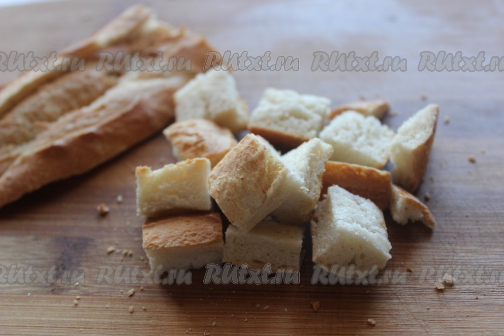 Верхушку багета, которую мы срезали, нарезать небольшими квадратиками.