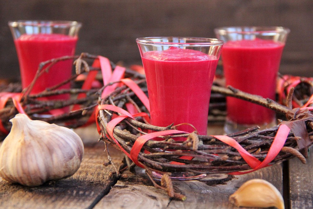Разложить получившийся мусс из свеклы по рюмкам и поставить в холодильник на 2 часа.