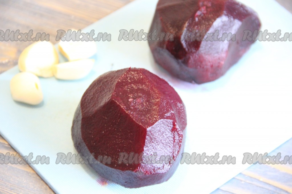 Очистить свеклу и чеснок.