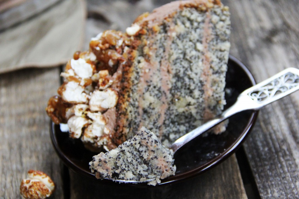 Тортики - моя слабость, люблю готовить и украшать! Недавно попробовала приготовить тортик с коржами из мака и орехов с кремом из творожного сыра. Торт получился очень вкусным и нежным. Верх украсила шоколадным попкорном и карамелью.