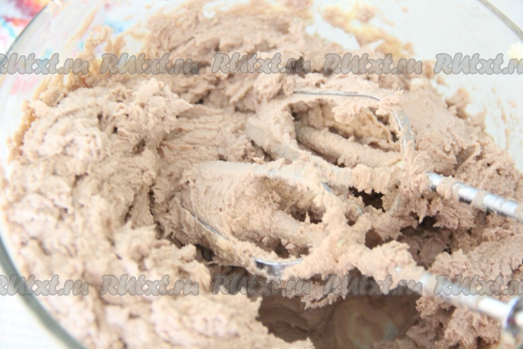 Затем добавить творожный сыр, сахар по вкусу (я не добавляла сахар, так как я готовила со сладким шоколадным творожным сыром) и ещё раз перемешать до однородного состояния. Крем получается воздушным и очень хорошо держит форму.