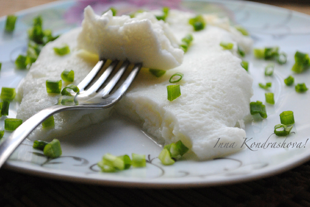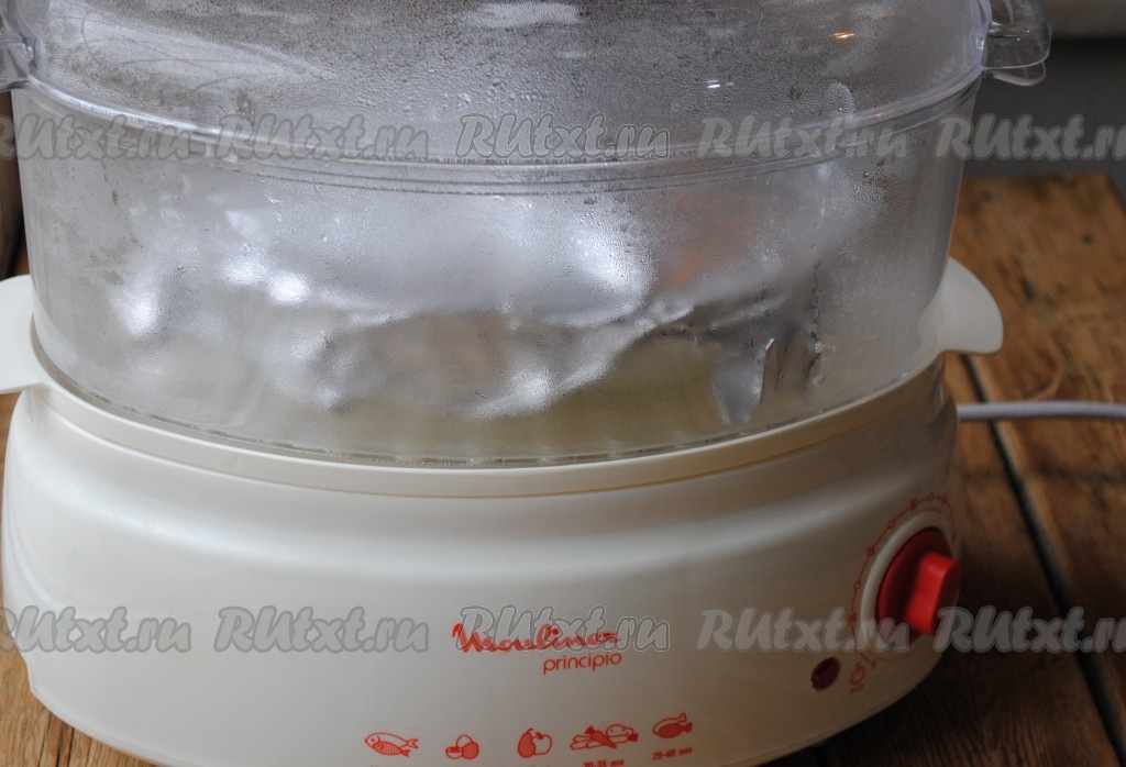 Форму с белковой массой накрыть фольгой и отправить в пароварку. Готовится белковый омлет очень быстро, через 10 минут его можно доставать.