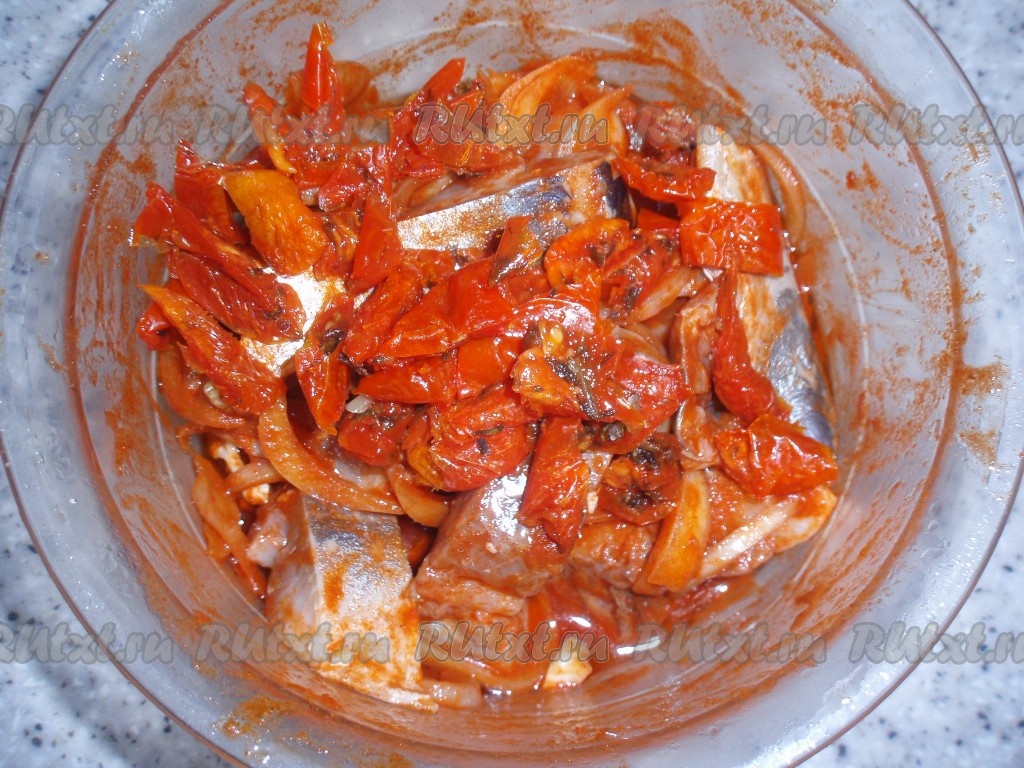 Селедка, приготовленная по этому рецепту, получается очень вкусной. Закуску из сельди с вялеными помидорами можно подать к столу с отварной картошкой или просто с хлебушком. В любом случае будет отлично.