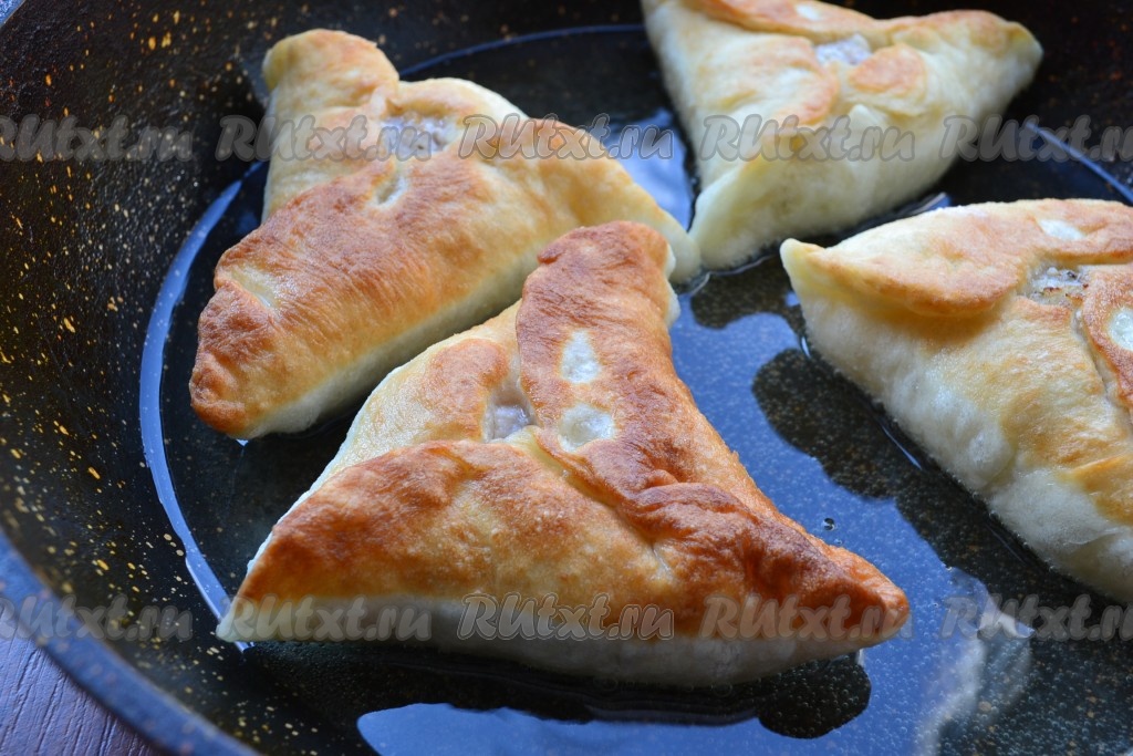 Масло растительное разогреть в сковороде. Выкладывать беляши отверстием вниз в горячее масло. Далее жарить беляши до румяности с двух сторон на небольшом огне, прикрыв сковороду крышкой.