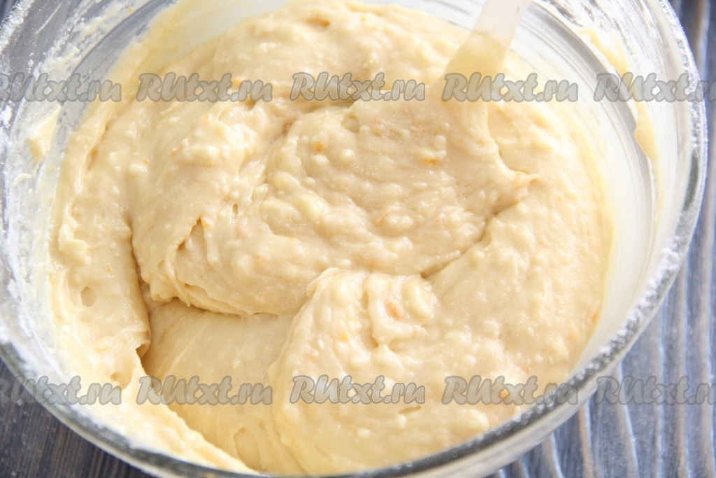 Замесить тесто с помощью силиконовой лопатки. Тесто получится в меру густым.