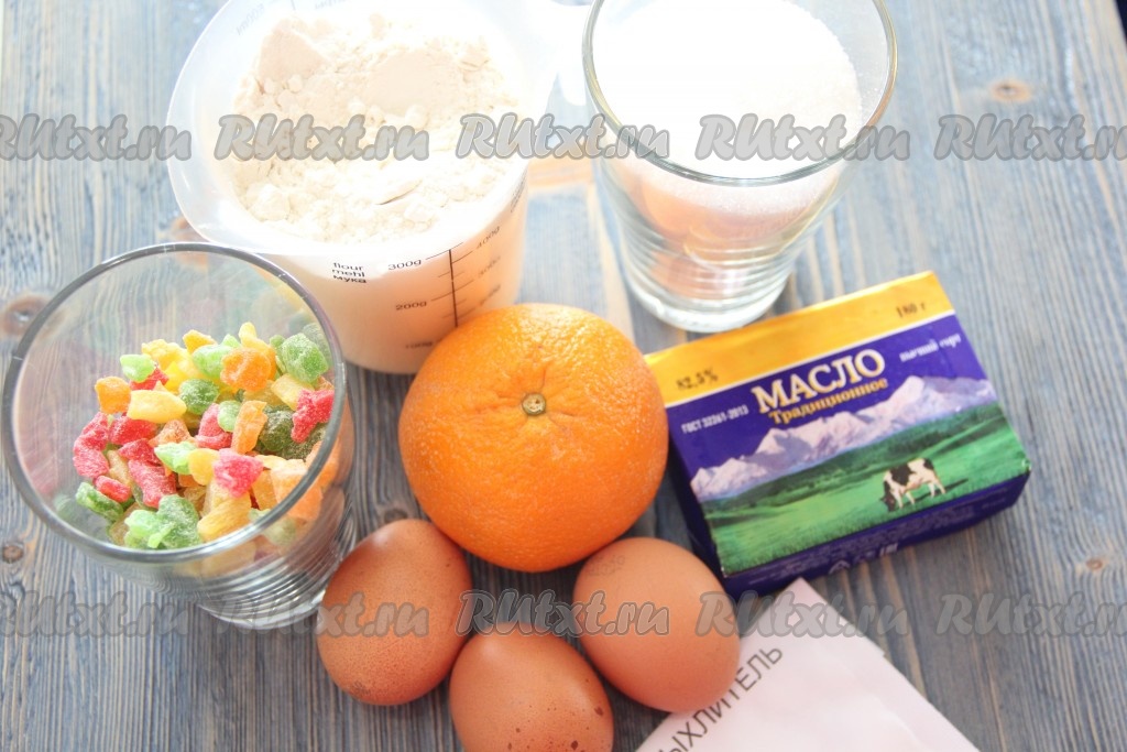 Подготовить продукты для приготовления кулича. Апельсин взять среднего размера. Яйца использовала 1 категории.