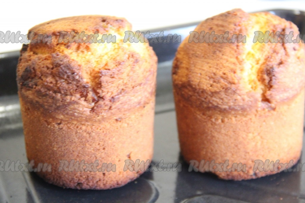 Разложить тесто по формам, заполняя их на 1/3 объёма. Куличи во время выпекания увеличатся в размере.