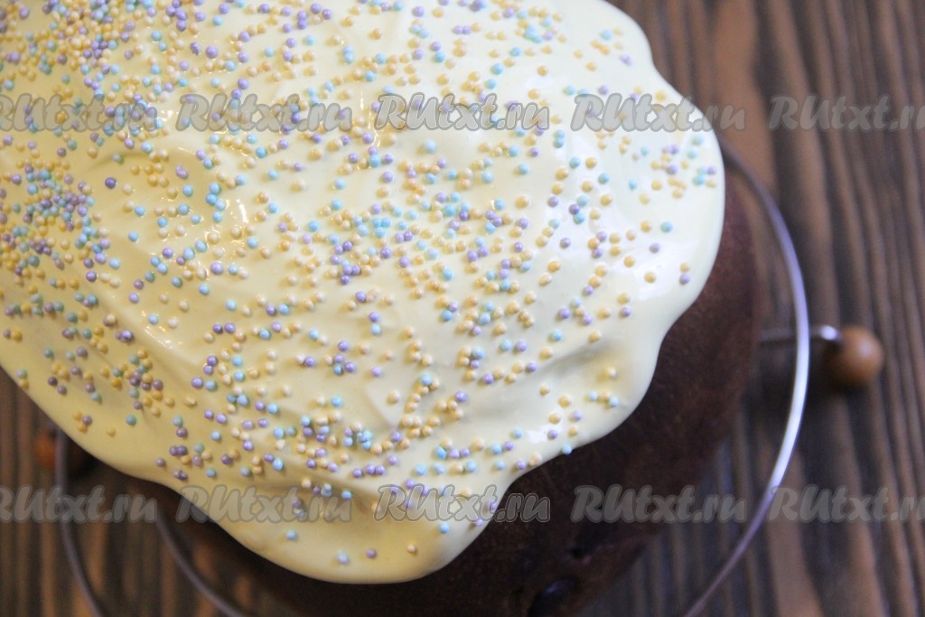 Украсить верх кулича цветной посыпкой.