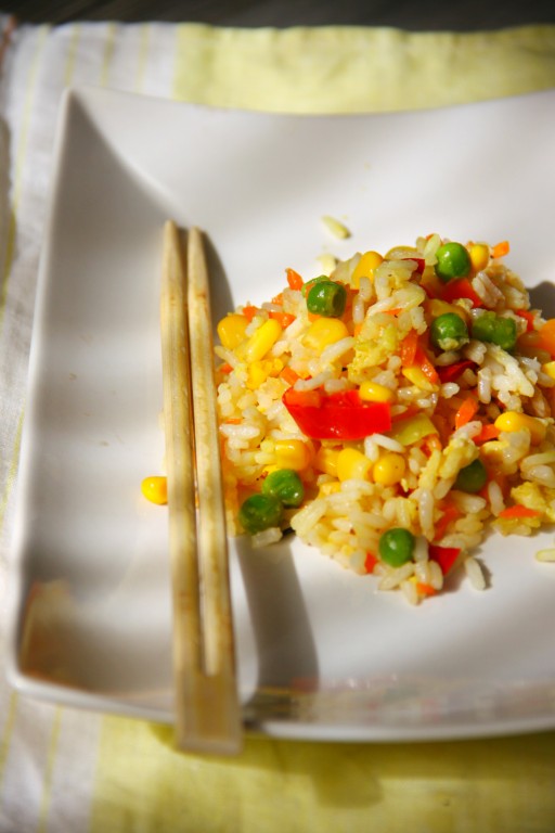 Последнее время часто готовлю рис с кукурузой и горошком по этому рецепту. Сочные овощи, нежное яйцо и рис, предварительно обжаренный в соевом соусе, делают это блюдо изумительно вкусным, красивым и сытным. Такой рис можно подать в качестве гарнира к рыбе, мясу или как вполне самостоятельное блюдо.
