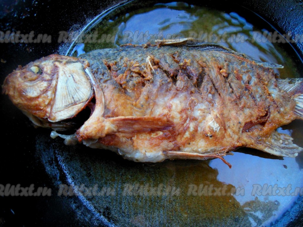 Жарьте карасей на среднем огне по 4-5 минут с каждой стороны, не накрывая сковороду крышкой (до красивого золотистого цвета).