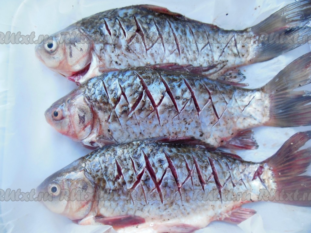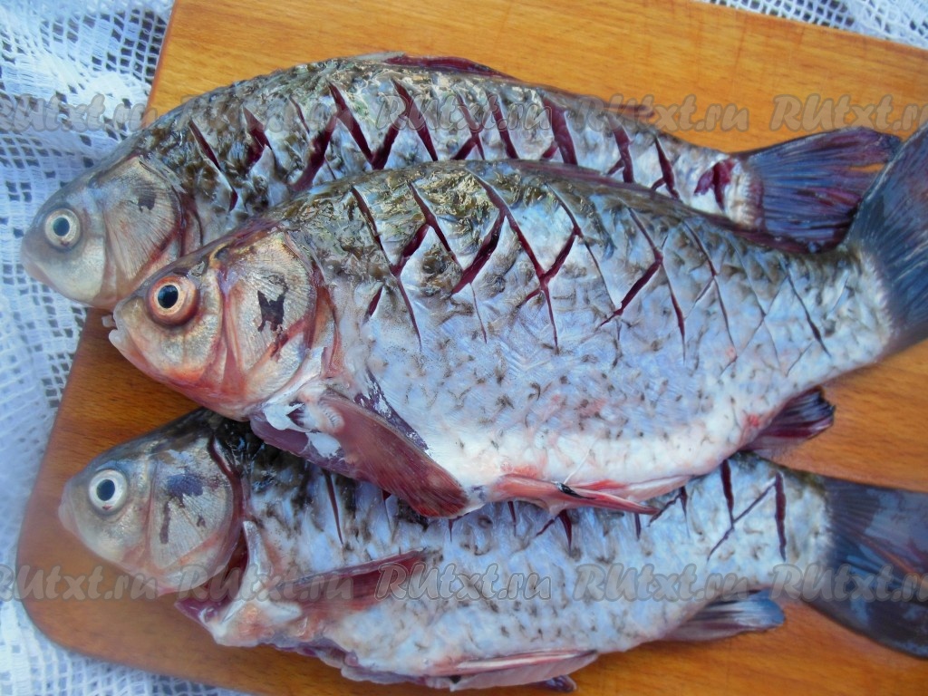 Карасей очистите от чешуи, уберите внутренности и жабры из головы.