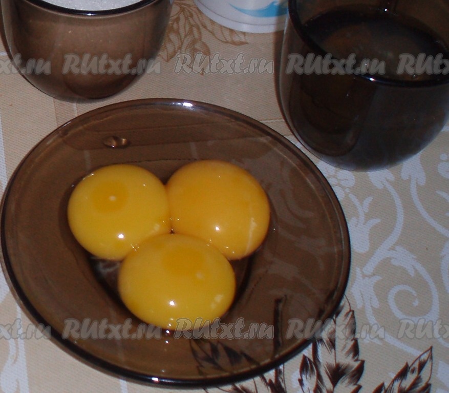 Яйца вымыть, отделить белки от желтков. Белки поставить в холодное место.