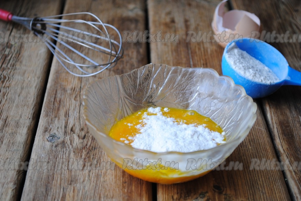 Взболтать яйцо с помощью венчика или вилки, всыпать частями муку. Муки может понадобиться немного меньше, количество будет зависеть от размера яйца. Кляр должен получиться однородным, без комочков и по консистенции напоминать густую сметану. Если кляр будет жидким, он просто стечет с крабовой палочки и в итоге ничего не получится.