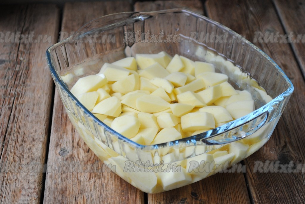 Картофель очистить, вымыть и нарезать крупными кусочками.