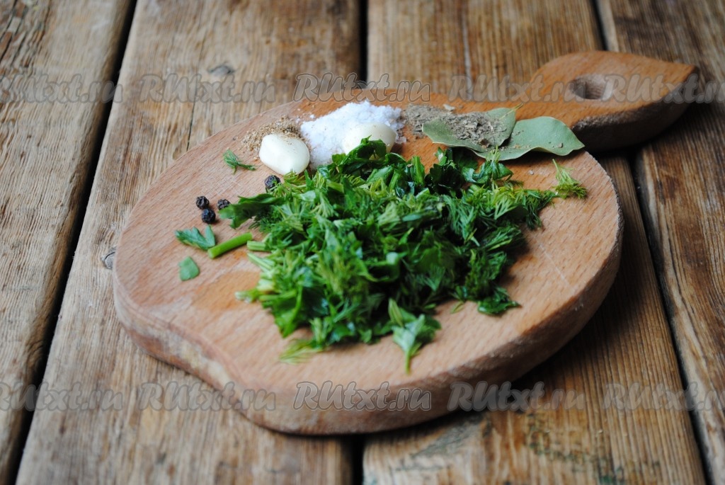 Проварить шурпу из баранины пару минут и добавить специи: соль, чёрный молотый перец (кто любит острые блюда - можно использовать красный молотый перец), хмели-сунели, молотый кориандр, лавровые листья. Чеснок очистить и пропустить через пресс, добавить в суп. Укроп и петрушку мелко измельчить и тоже добавить в кастрюлю.