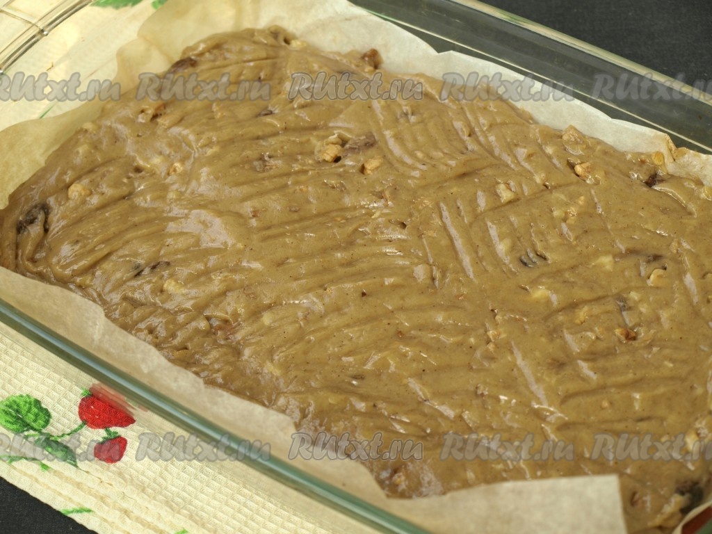 Коврижку выпекать 50-60 минут (до готовности) в разогретой духовке при температуре 180 градусов.