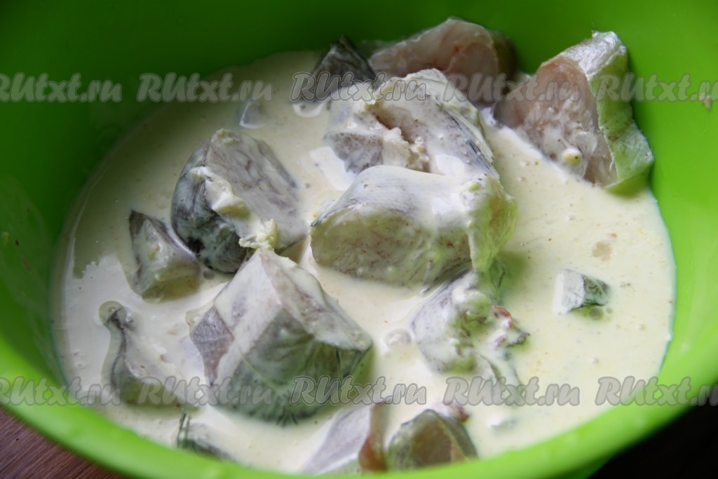 Хека нарезать на порционные кусочки.