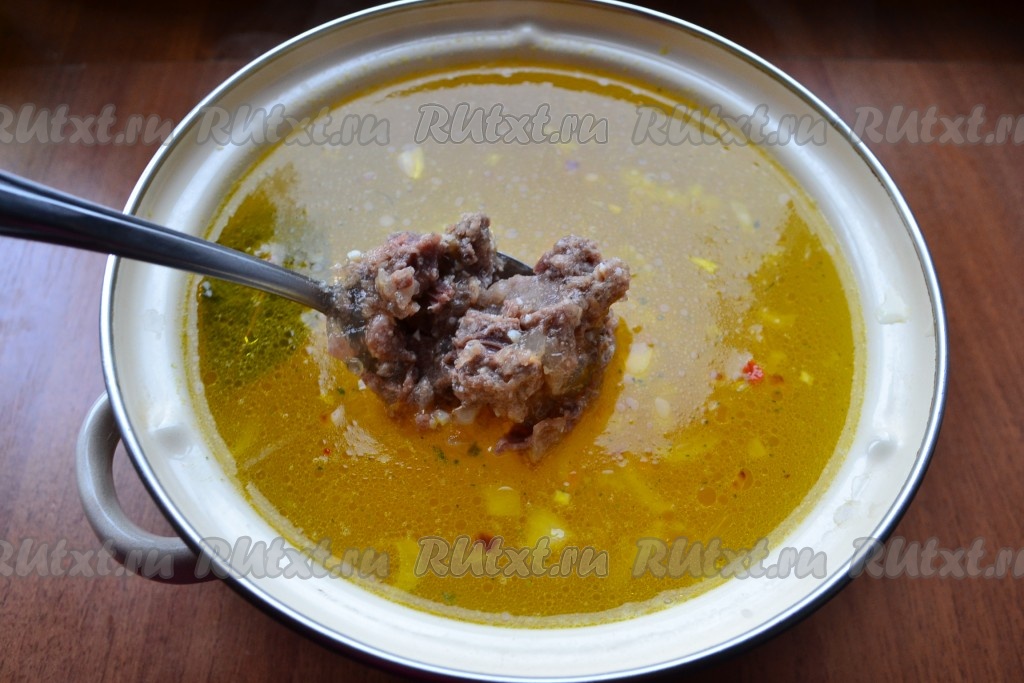 В суп добавить тушенку, перемешать. Также добавить и измельченный чеснок. Дать супу прокипеть на медленном огне еще минут 5-7.
