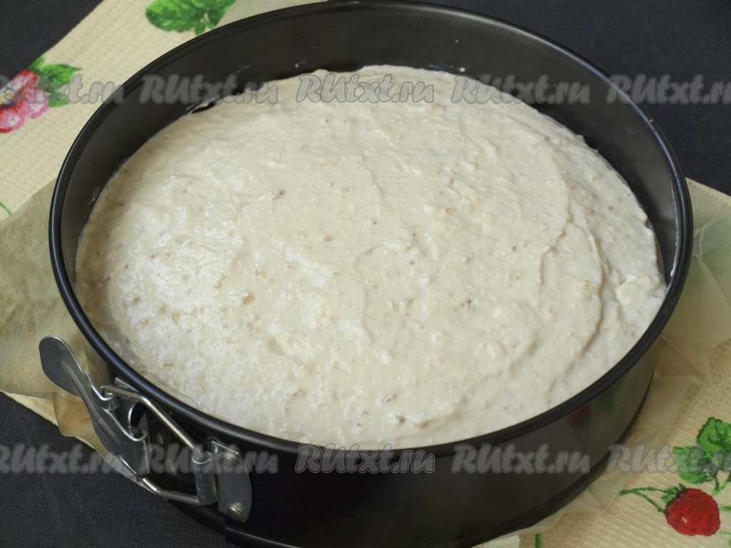 Залить творожную смесь в форму поверх основы из печенья. Верх разровнять. Поставить банановый чизкейк в холодильник на 4 часа, пока творожная масса хорошо не схватится. У меня стоял ночь.