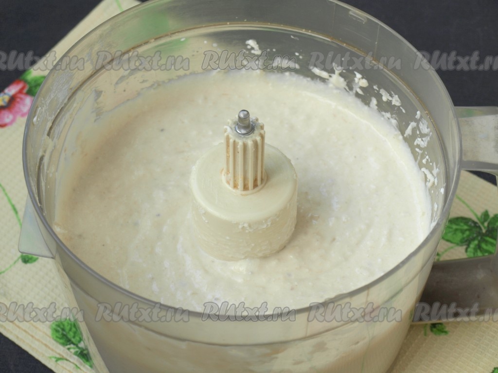 Затем эту желатиновую смесь добавить в общую массу и взбить в комбайне до однородной консистенции.