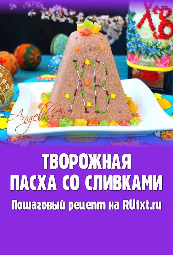 Наивкуснейшую творожную пасху со сливками украсить цукатами и цветной посыпкой. Такой десерт станет достойнейшим украшением праздничного стола и понравится и вам, и вашим близким!