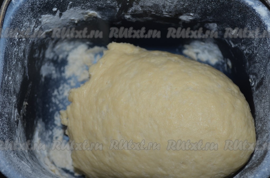 После добавления всей муки (и при замешивании теста вручную, и при замешивании в хлебопечке) тесто должно получиться однородным и слегка липнущим к рукам.