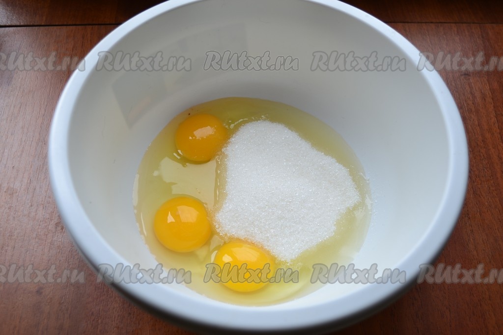 Взбить яйца с сахаром немного венчиком.