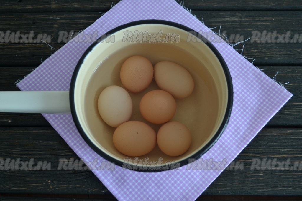 Яйца натереть на средней терке и выложить к натёртой куриной печени.