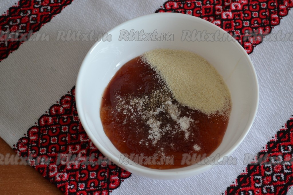 Добавить к икре манную крупу, соль и молотый душистый перец.
