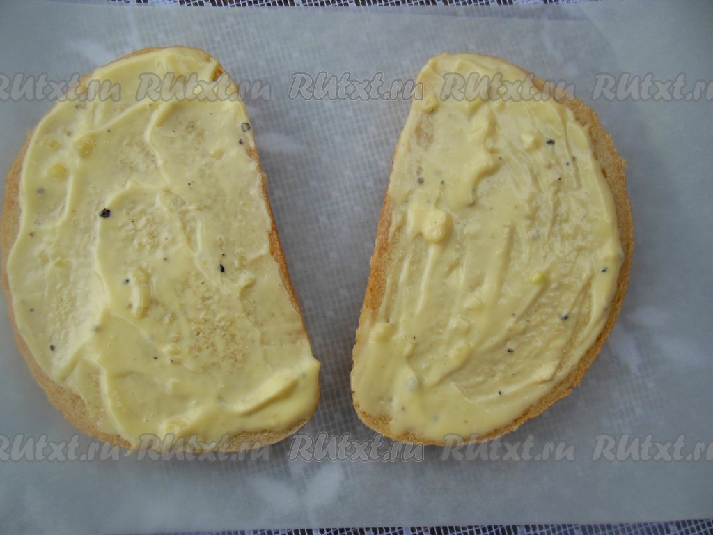 Каждый кусочек хлеба намажьте тонким слоем получившегося соуса.