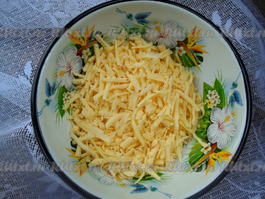 Твердый сыр натрите на терке.