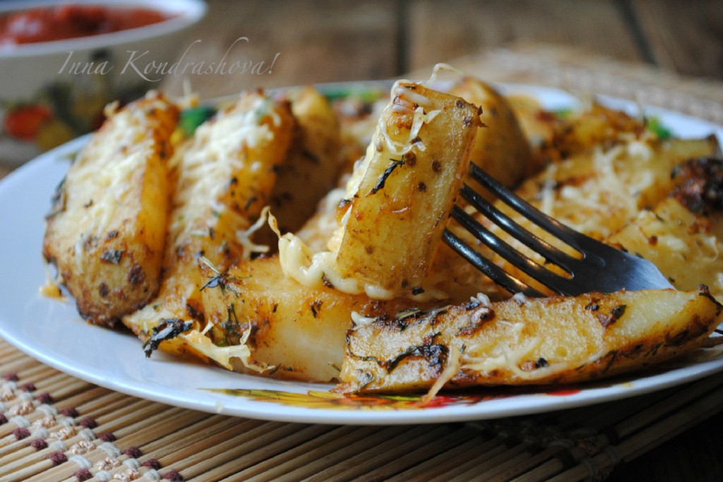 Запекать молодую картошку по-деревенски в духовке, заранее разогретой до 190 градусов, минут 20-25.