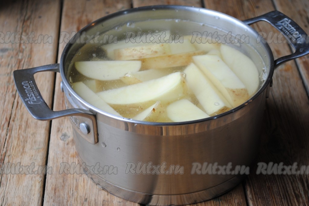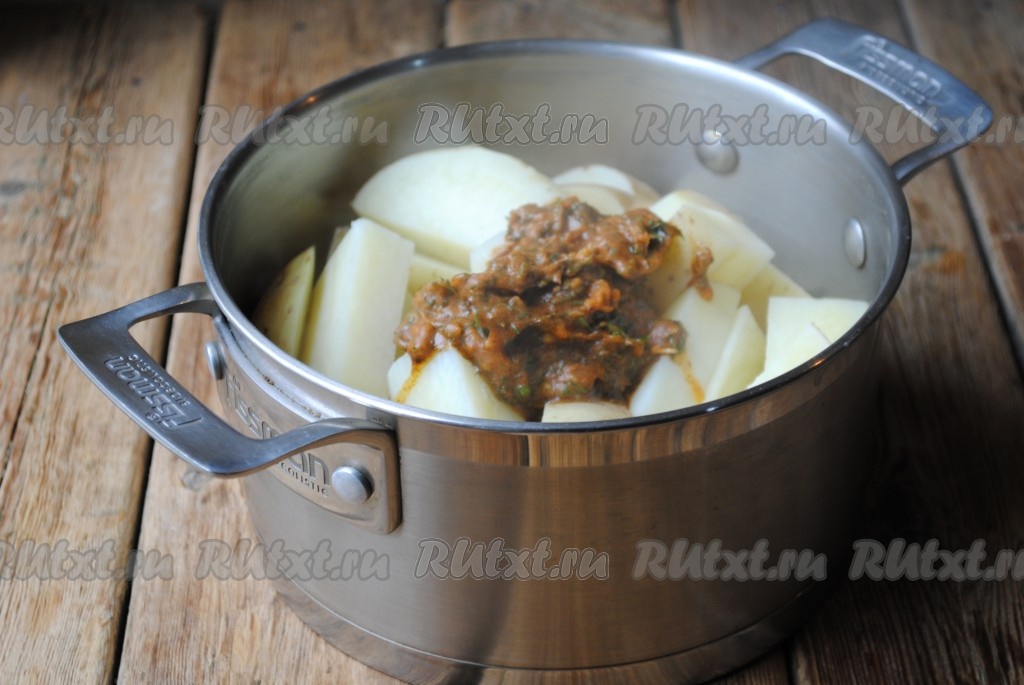 По истечении времени воду с картофеля слить (она нам больше не понадобится).