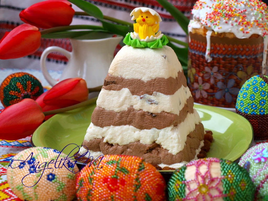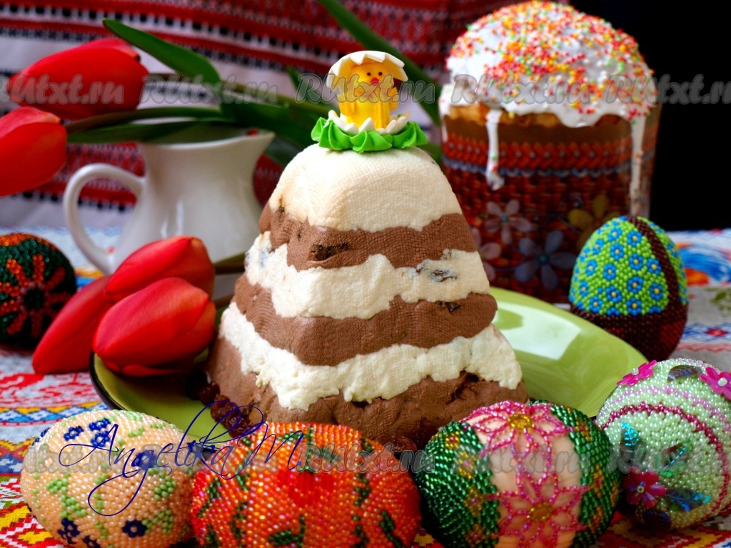 Вкусную творожную полосатую пасху подать к праздничному столу.