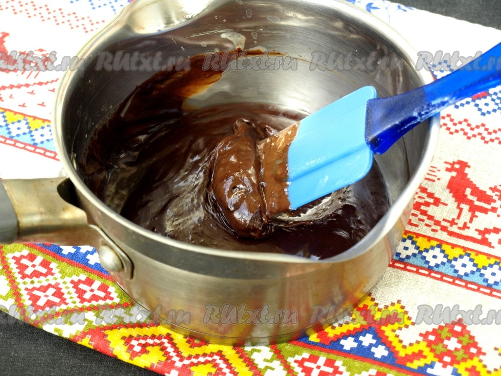 Хорошо нагреть сливки, снять с огня и добавить к ним поломанный на кусочки шоколад, подождать пару минут, затем размешать всю массу до однородности. Дать остыть получившейся шоколадной массе.