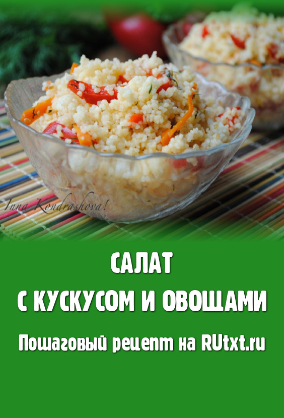 Вкусный, сытный салат с кускусом и овощами готов. Разложить его по салатницам и подавать на стол в тёплом виде.