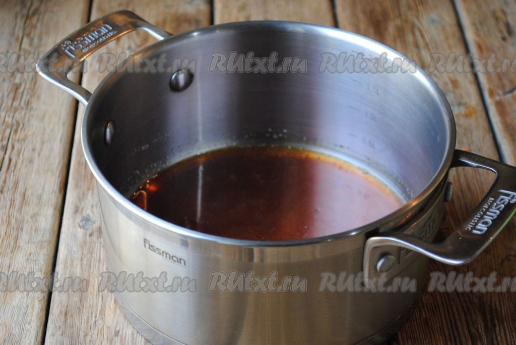 Сахар, не помешивая, начать прогревать на среднем огне. Когда он начнёт растапливаться, кастрюлю нужно наклонять из стороны в сторону, чтобы кристаллики растворились равномерно.