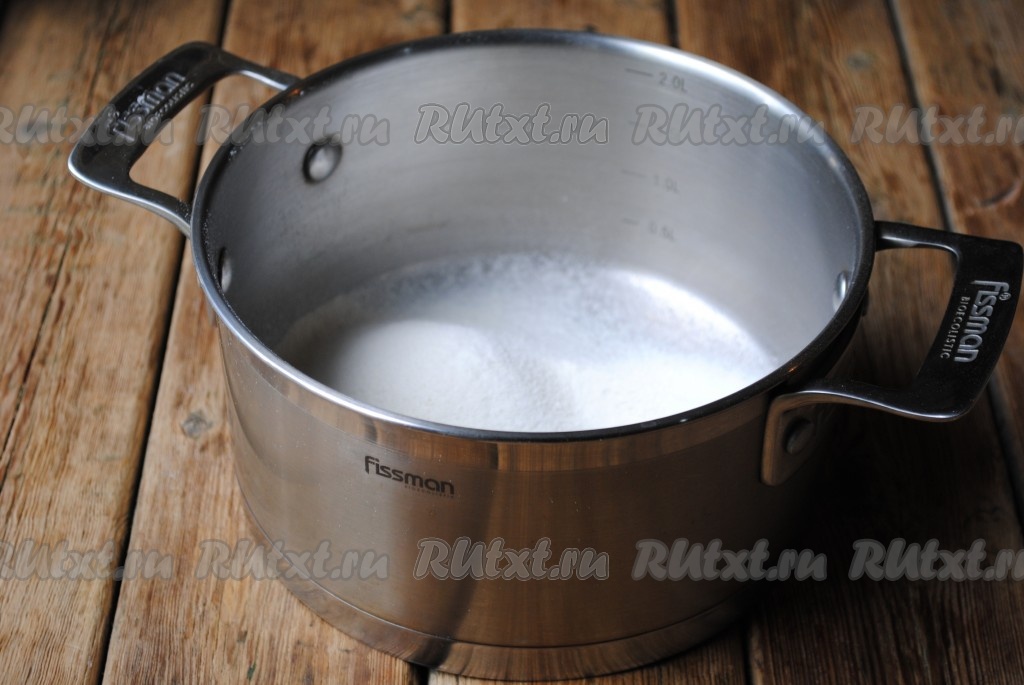 Сахар и муку смешать в небольшой кастрюле или сотейнике.