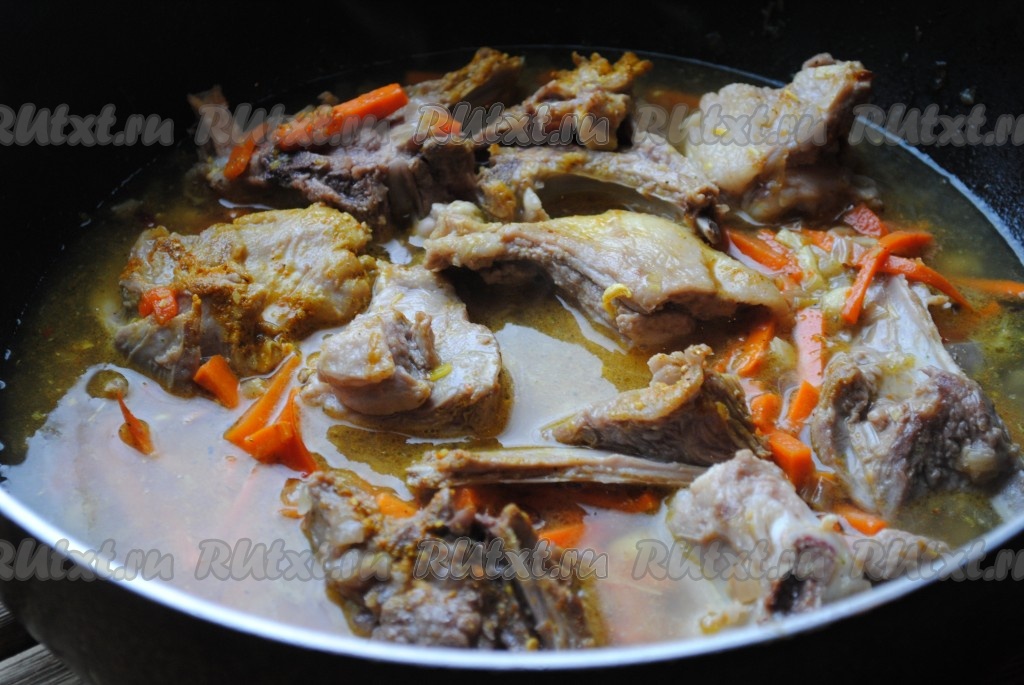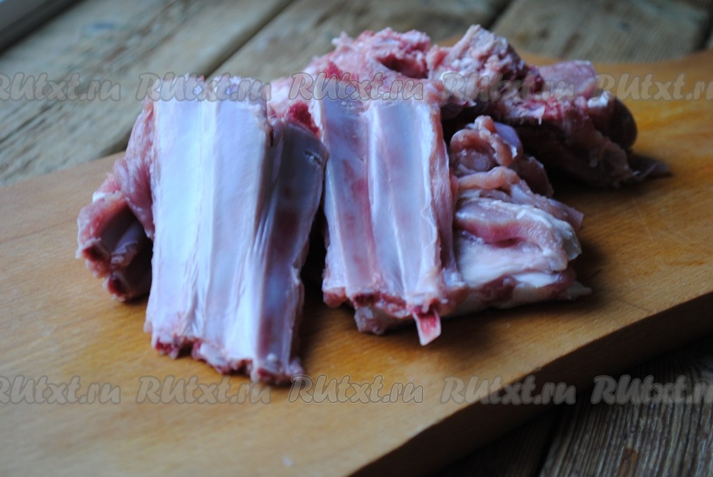 Мясо (я готовила бараньи ребра) вымыть и нарезать на порционные кусочки.