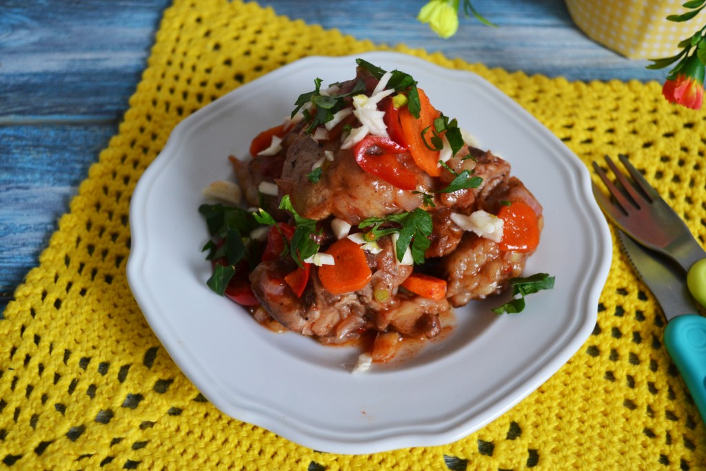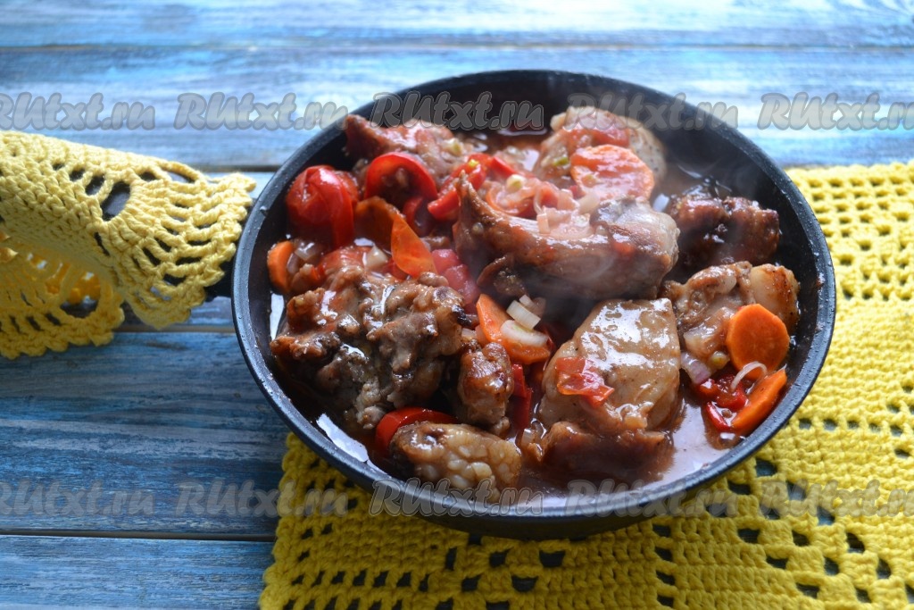 Нежное, сочное, ароматное жаркое из кролика выложить на блюдо.