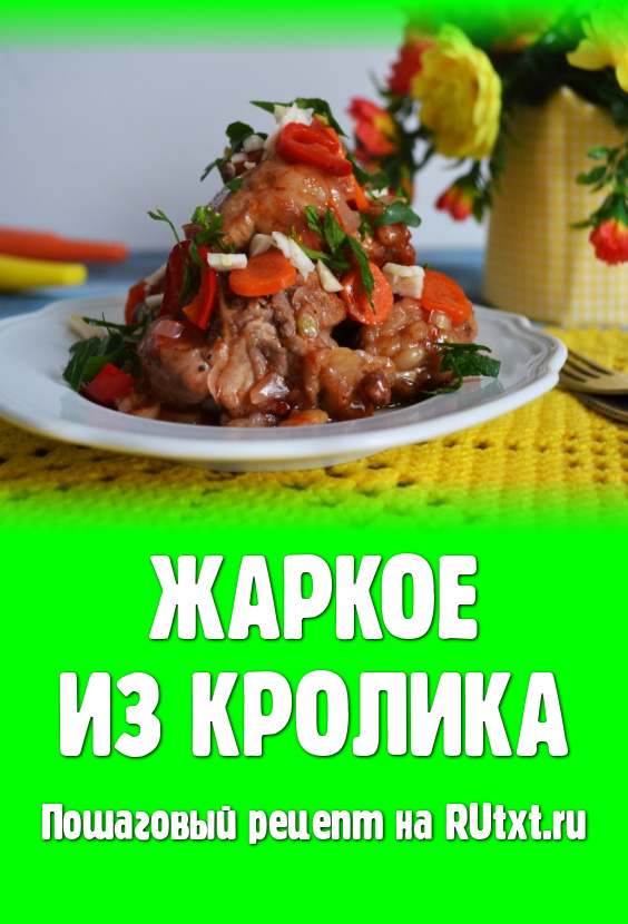 Мясо кролика - диетическое, нежное и очень вкусное. Из него можно приготовить много прекрасных блюд. Предлагаю приготовить жаркое из кролика и насладиться его великолепным вкусом и ароматом. Рецепт очень прост, а результат превосходный. В качестве гарнира подойдет отварной картофель или пюре, каши, свежие овощи. Попробуйте обязательно!