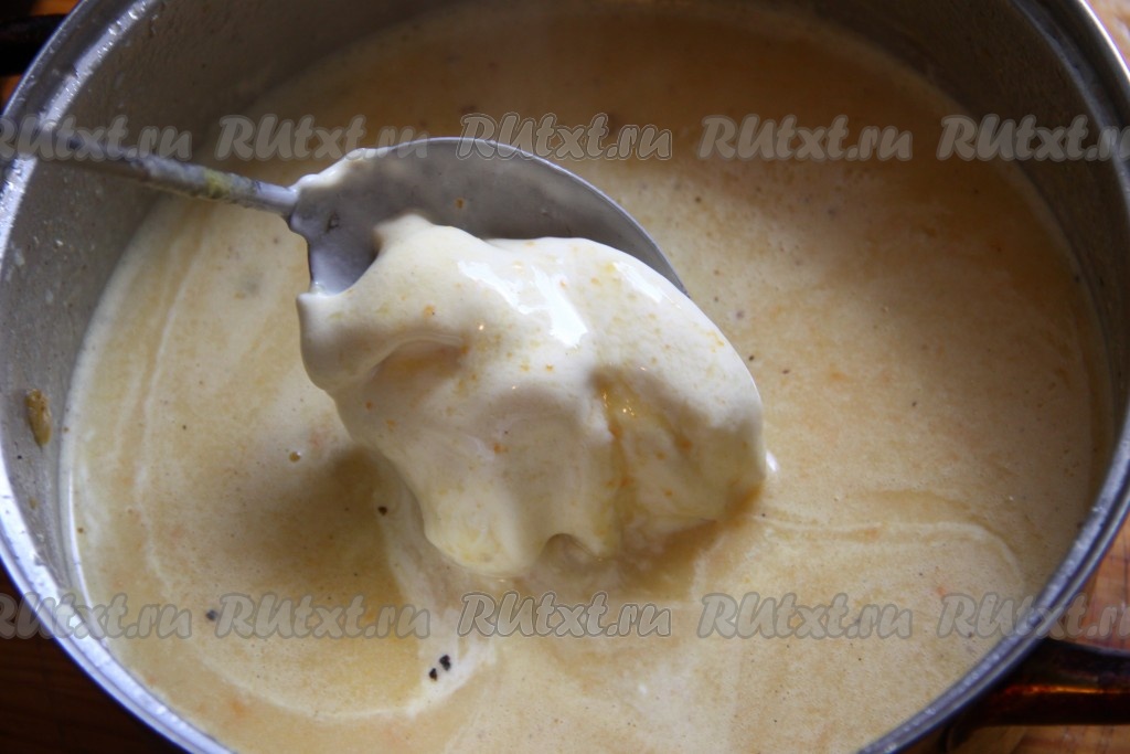 Добавляем в кастрюлю сливки и отправляем на огонь. Доводим крем-суп до кипения и выключаем газ. Если суп показался вам жидковатым, проварите его некоторое время на небольшом огне, не закрывая крышку, чтобы часть жидкости испарилась.