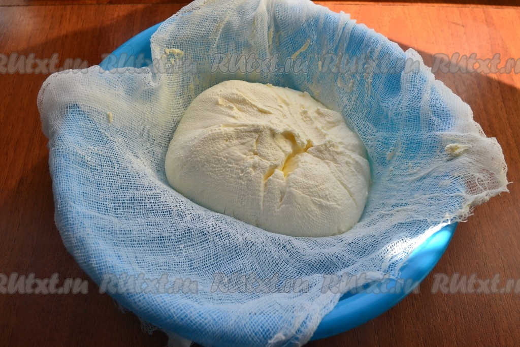 Если используете магазинную сметану, ее нужно отвесить в марле. Для этого: сметану поместить в 2 слоя марли и подвесить, чтобы стекла вся жидкость. У меня для этого понадобилось 3 часа.